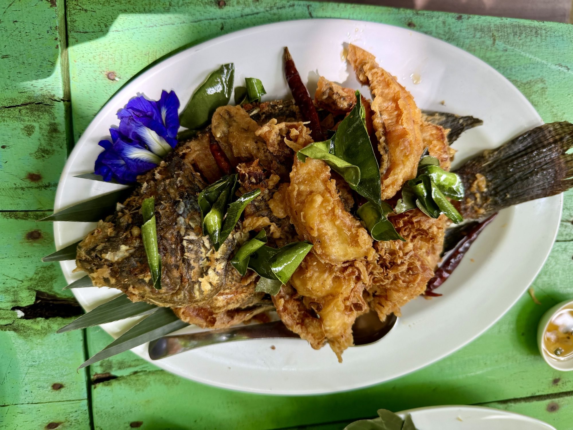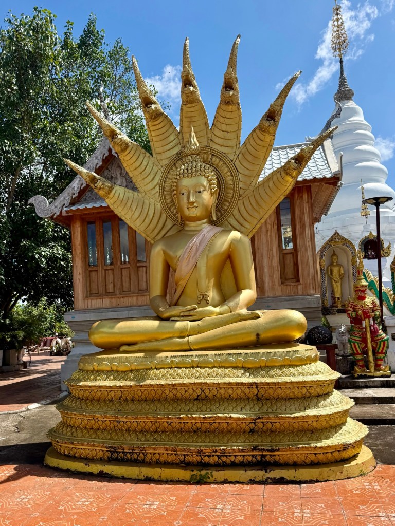 This weekend I got to explore many parts of Phrae with my host family! On Saturday, we visited “Teletubby Mountain” and went to a temple. This temple had a humongous statue of Buddha surrounded by the mountains. On Sunday, we went to a restaurant near a river. We ate fried fish, which was served on top of the whole fish.